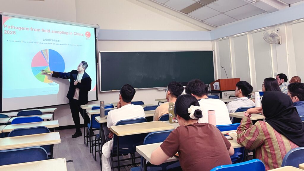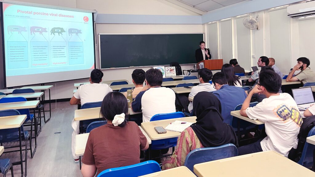 Beyond swine pathogens, the lecture touched upon cross-species and emerging threats. Dr. Chang noted that with no commercial vaccine currently available for African Swine Fever (ASF), strict biosecurity remains paramount. He also discussed the rapid evolution and reassortment of highly pathogenic Avian Influenza strains, such as H5N5, in poultry and wild birds.