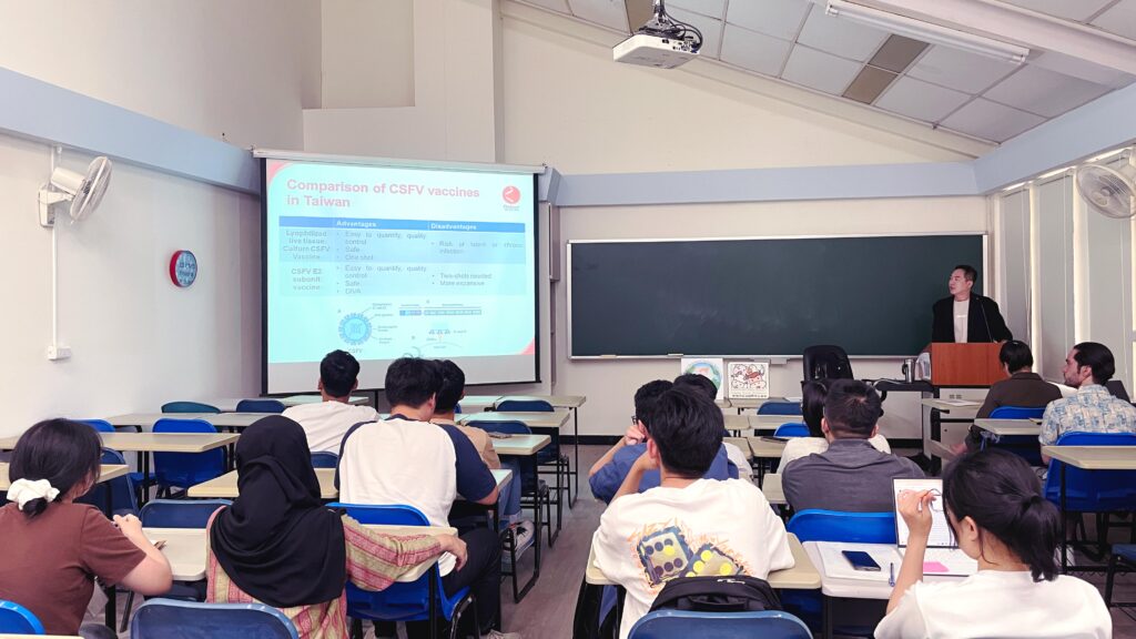 The International Department of Veterinary Medicine (IAVT) at NPUST recently welcomed Dr. Frank C.J. Chang for an in-depth lecture on “Livestock Epidemics and Vaccines in Asia.” Held as part of the Biosecurity and Epidemic Prevention System course, the session provided students and researchers with critical industry insights into the current epidemiological landscape and the future of veterinary biologics.